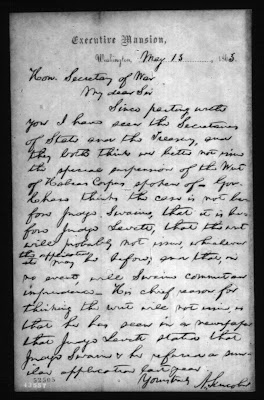 first such act of the war, President Lincoln suspends the Writ of Habeas Corpus